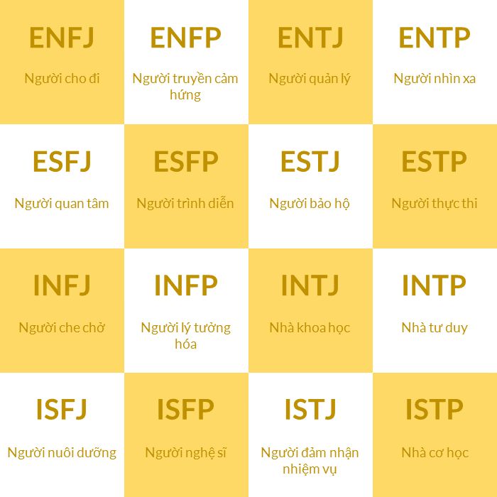 Tổng cộng có bốn kiểu người khác nhau, và chúng cũng có thể chia thành hướng nội (introvert) và hướng ngoại (extrovert).